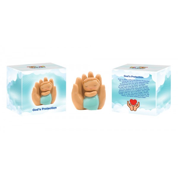 Anjo protector bebe na mão pequeno azul